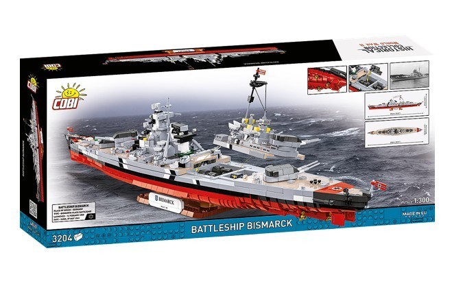 Zestaw BISMARCK to niepowtarzalna okazja, by zbudować jeden z kultowych zestawów okrętowych COBI, tym razem w skali 1:300 i stworzyć model, który zachwyca rozmachem, detalami oraz historycznym znaczeniem.