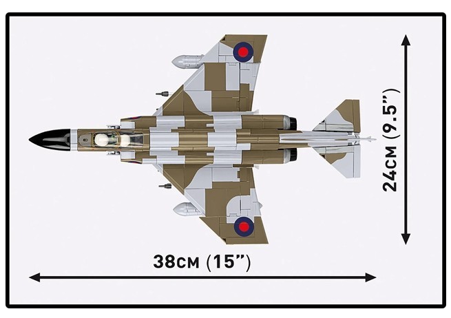 - 728 elementów - Zbudowany z wysokiej jakości klocków, model zawiera mnóstwo detali odwzorowujących brytyjskie wersje F-4M, w tym zmodyfikowane silniki, dodatkowe uzbrojenie oraz oznaczenia RAF.