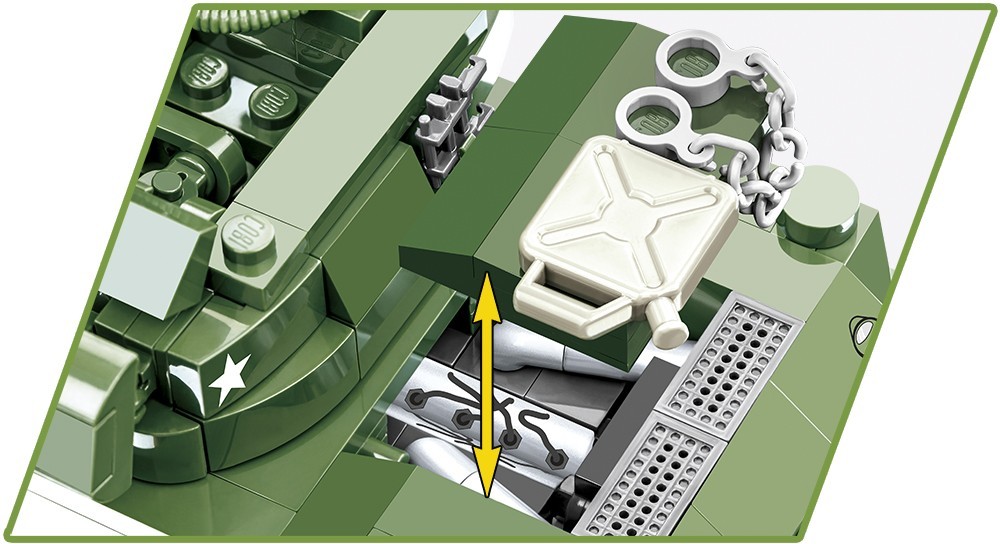 Wszystkie elementy graficzne to wysokiej jakości nadruki. Figurka przedstawia amerykańskiego żołnierza w randze kapitana. Do zestawu dołączona jest tabliczka z nadrukowaną nazwą zestawu. Nasza kolekcja w skali 1:35 nie może się obyć bez tego zestawu! Zbuduj historię, klocek po klocku!