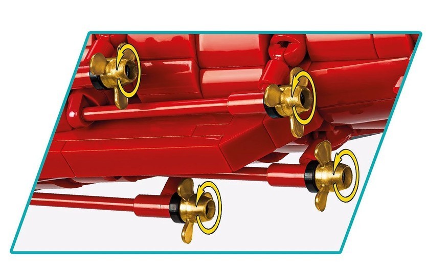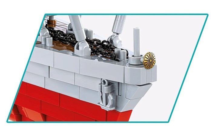 Ten wielki model polecamy głównie kolekcjonerom-weteranom oraz fanom klocków, którym niestraszne wielogodzinne budowanie!. Okręt nie wymaga sklejania ani malowania, ponieważ cała jego bryła i wszystkie elementy składają się z klocków konstrukcyjnych COBI z nadrukami. Dzięki intuicyjnej instrukcji podzielonej na etapy proces budowy jest prosty i przejrzysty. Ze względu na ponad 3500 elementów gwarantujemy wielogodzinny proces budowy zwieńczony naprawdę spektakularnym efektem!