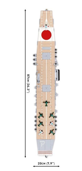 Model okrętu stworzony przez firmę COBI został wyprodukowany w skali 1:300. Składa się z 3573 elementów i ma aż 87 cm długości. Dzięki zastosowaniu najnowszych dostępnych elementów oraz zaawansowanych technik konstrukcyjnych model możliwie wiernie oddaje proporcje historycznego okrętu i zachowuje jego wszystkie istotne elementy. Bardzo ciekawym rozwiązaniem konstrukcyjnym są dwie ruchome windy samolotowe, które możemy podnosić i opuszczać. Lotniskowiec Akagi posiada liczne ruchome części takie jak: śruby napędowe, stery, obracane wieże i lufy dział, które można podnosić i opuszczać. Na pokładzie lotniskowca może możemy ustawić 5 dołączonych do zestawu kolorowych mini samolotów z nadrukami! Zestaw zawiera także bardzo stabilną i estetyczną, czarną podstawkę ekspozycyjną z tabliczką, na której jest nadrukowana nazwa oraz skala okrętu.