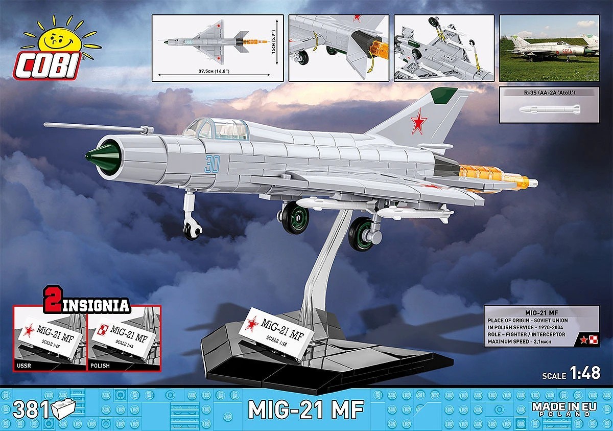 Ten 381-elementowy zestaw w skali 1:48 pozwala zbudować wierny model MiG-21MF, maszyny, która przez dziesięciolecia dominowała w polskim i radzieckim lotnictwie wojskowym. Dzięki precyzyjnym nadrukom z polskimi i radzieckimi oznaczeniami model łączy w sobie pasję do historii, kolekcjonerstwa oraz fascynację techniką lotniczą.