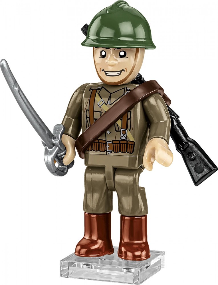 - Ułan Wojska Polskiego - Figurka ułana w wiernie odwzorowanym mundurze kawalerii z 1939 roku, w hełmie typu Adrian. Uzbrojony w karabin Mauser 98A oraz szablę ułańską, symbol polskiej kawalerii, doskonale oddaje tradycję i etos tej formacji. W połączeniu z dołączoną figurką konia umożliwia zbudowanie dynamicznej sceny patrolu lub manewru kawaleryjskiego.