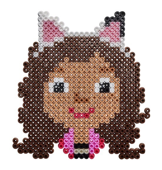 Około 2000 koralików, 1 plansza do układania, kolorowa karta ze wzorem, instrukcja oraz papier do prasowania.