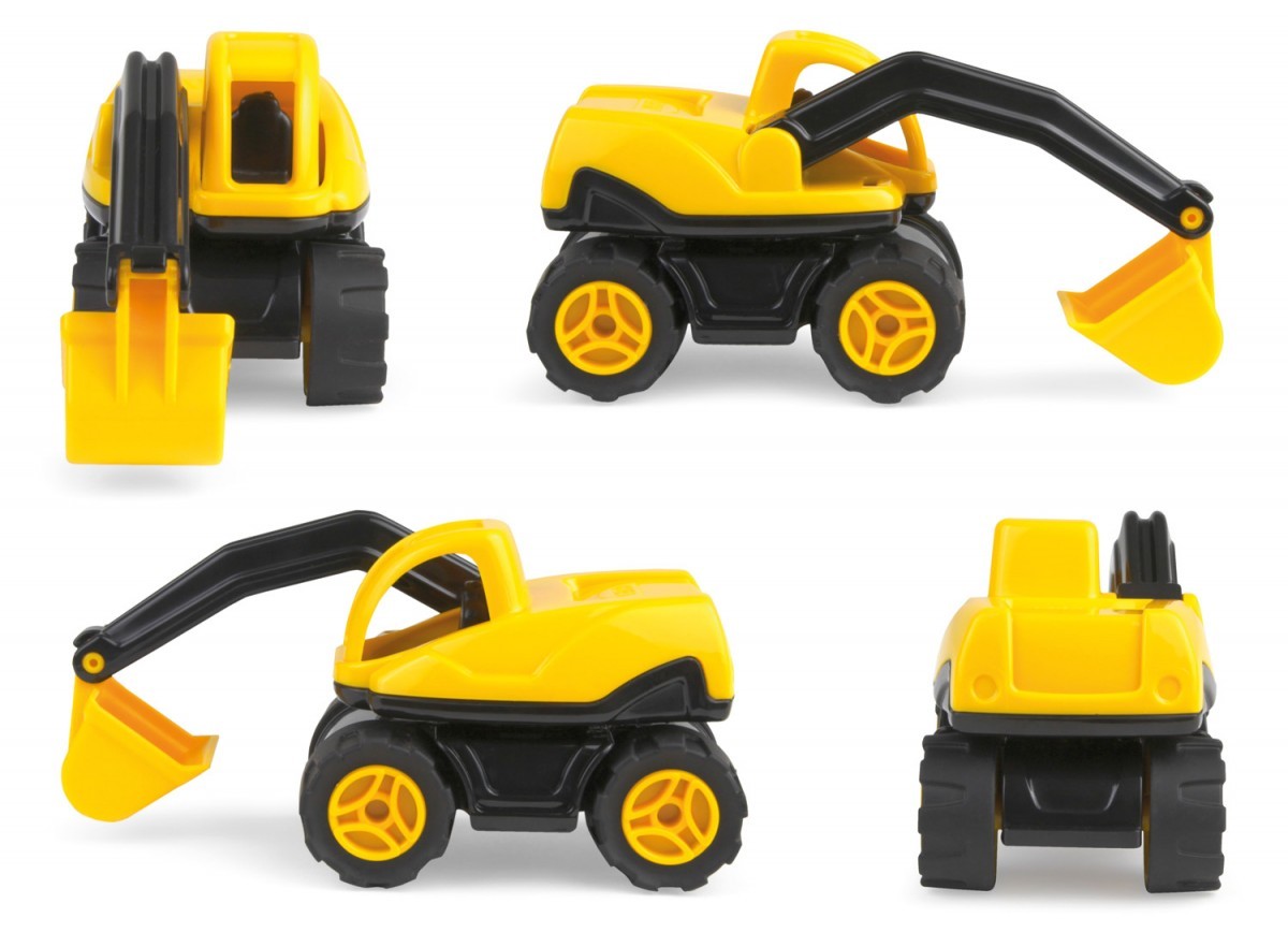 Koparka wykonana z wytrzymałego tworzywa ABS z wysokiej jakości gumowanymi kołami. Osie ze stali ocynkowanej 4 mm.