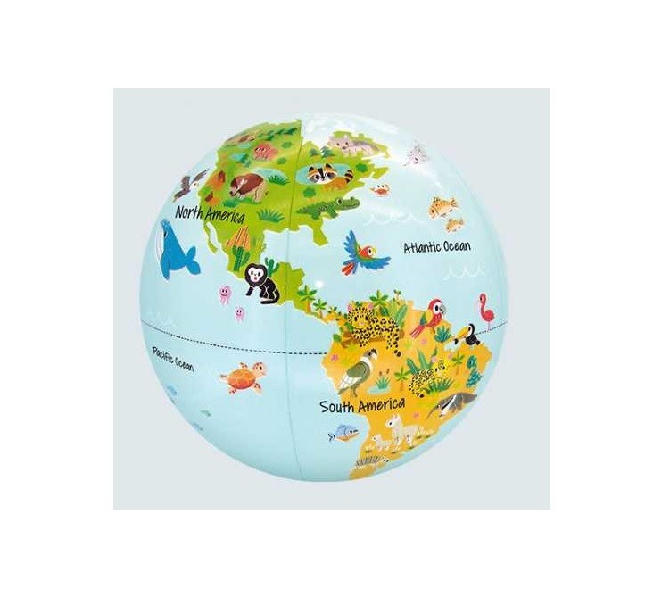 Afektywny projekt tego globusa jest skierowany do małych dzieci. Eksplorują przyrodę, odkrywają długą szyję żyrafy, długi dziób tukana, amazoński las i stopniowo stają się świadomi otaczającego ich środowiska.