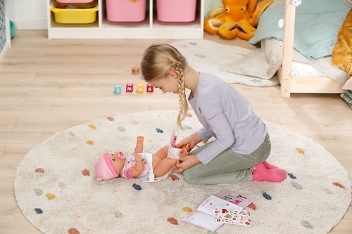 BABY born Emma 43 cm - bohaterkę znaną z popularnego animowanego serialu BABY born, teraz dostępną w nowym, uroczym stroju i z aż 10 akcesoriami, które sprawiają, że zabawa staje się jeszcze bardziej realistyczna. W zestawie znajduje się magiczny talerzyk, na którym po wlaniu wody pojawiają się pyszne potrawy, co dodaje uroku zabawie w karmienie. Po posiłku lub piciu wody z butelki można posadzić Emmę na nocniku i nacisnąć jej brzuszek - lalka potrafi zrobić zarówno małą, jak i dużą niespodziankę. Emma reaguje również jak prawdziwe dziecko - gdy pije z butelki, potrafi płakać i potrzebuje przytulenia. Pomaga w tym magiczny smoczek, który po obróceniu o 180 stopni otwiera lub zamyka jej oczka, a położona do snu Emma sama je zamyka. Lalka jest niezwykle elastyczna i nadaje się do kąpieli - schnie szybciej niż kiedykolwiek, a dzięki zdejmowanej nodze czyszczenie jest wyjątkowo proste. W zestawie znajduje się butelka, smoczek, magiczny talerzyk, łyżeczka, jedzenie, nocnik, pieluszka, akt urodzenia oraz dwie bransoletki przyjaźni - jedna dla Emmy, druga dla dziecka - symbolizujące wyjątkową więź i wspólną zabawę. BABY born Emma 43 cm to połączenie tradycji i nowoczesności w doskonałej jakości, która od 1991 roku zachwyca dzieci na całym świecie.